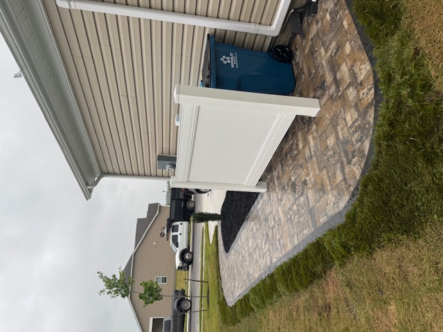 As part of this upgrade we also installed a vinyl trash can enclosure to keep bins neatly contained and protected from view. The enclosure improves curb appeal, reduces clutter, and makes trash day easier for the homeowner. Vinyl is low maintenance, so it stays looking good with minimal care while providing a tidy, practical solution.